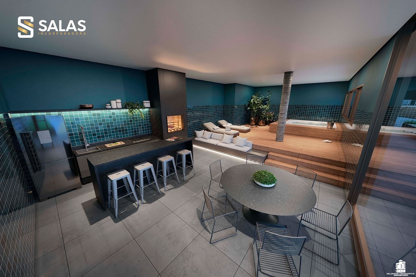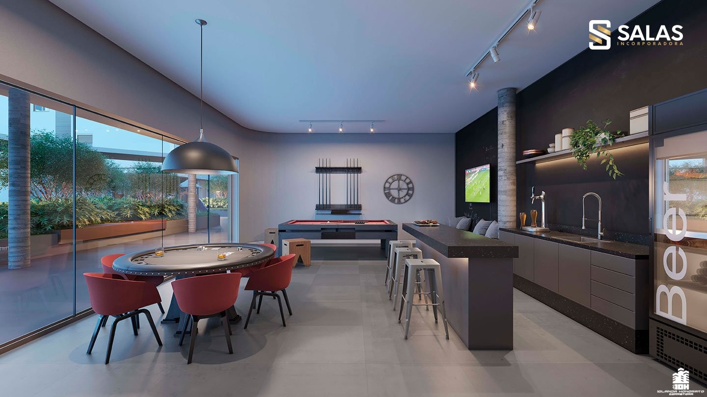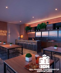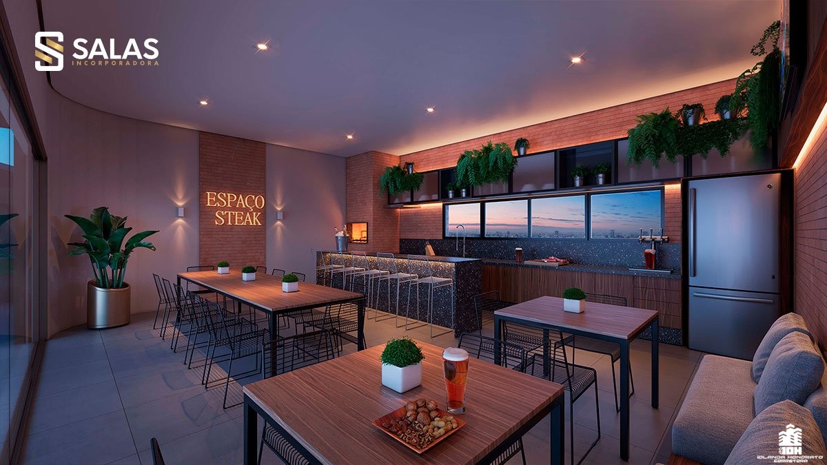 O Aurora Home Resort também conta com amplo salão de festas com churrasqueira, preparado para receber desde pequenos eventos até grandes festas, além de espaços temáticos exclusivos como o Espaço Stake, Espaço Wine, Sports Bar e até um Espaço Gourmet VIP com SPA. Perfeito para você colecionar bons momentos com a famÃlia e os amigos.