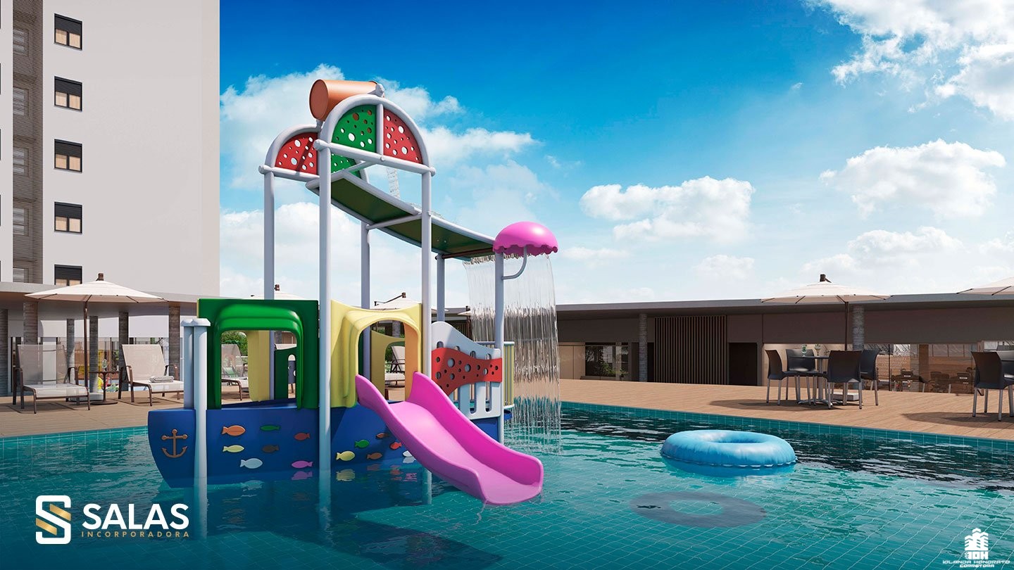 A sofisticação começa na entrada, com um imponente hall com pé direito duplo. Por dentro, um verdadeiro parque aquático te espera. Fomos além das convencionais piscinas e equipamos as nossas com deck molhado e Acqua Play! Brincadeiras para a criançada, conforto para os pais e diversão geral!